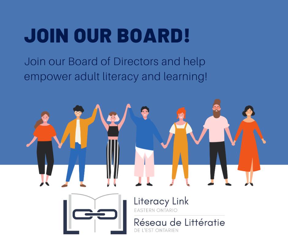 Literacy Link Eastern Ontario is seeking volunteers who are passionate about literacy and community service to join us as members of our Board of Directors to help us achieve our mission of empowering literacy service providers and learners in Eastern Ontario. We are located in Brockville and are seeking volunteer Board members from the general area of Southeastern Ontario including Picton, Napanee, Kingston, Brockville and Cornwall areas.